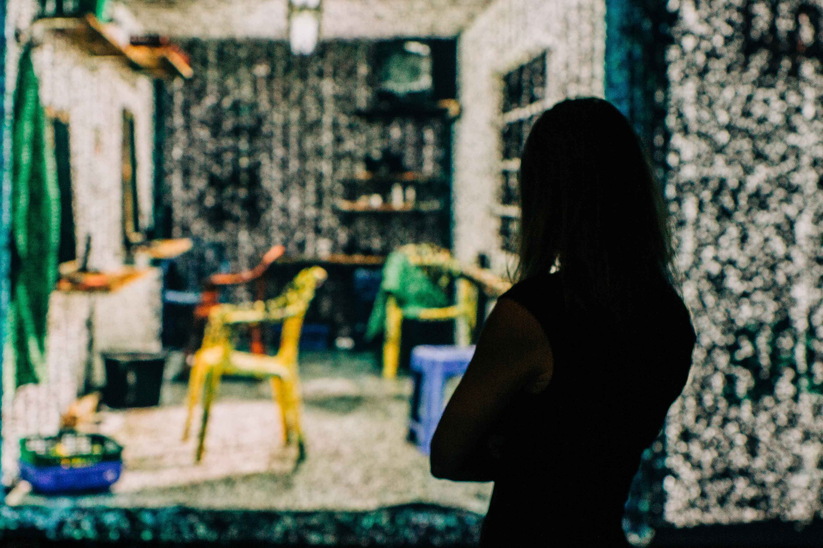 The salon here becomes a symbol of something temporarily stable in a world in turmoil - a place full of stories in transit, hopefully on the way to something better. In the exhibition the hair salon is built with the girls' stories until it is completed, created from 20 million fragments - one for every girl who is currently on the move in the world today.