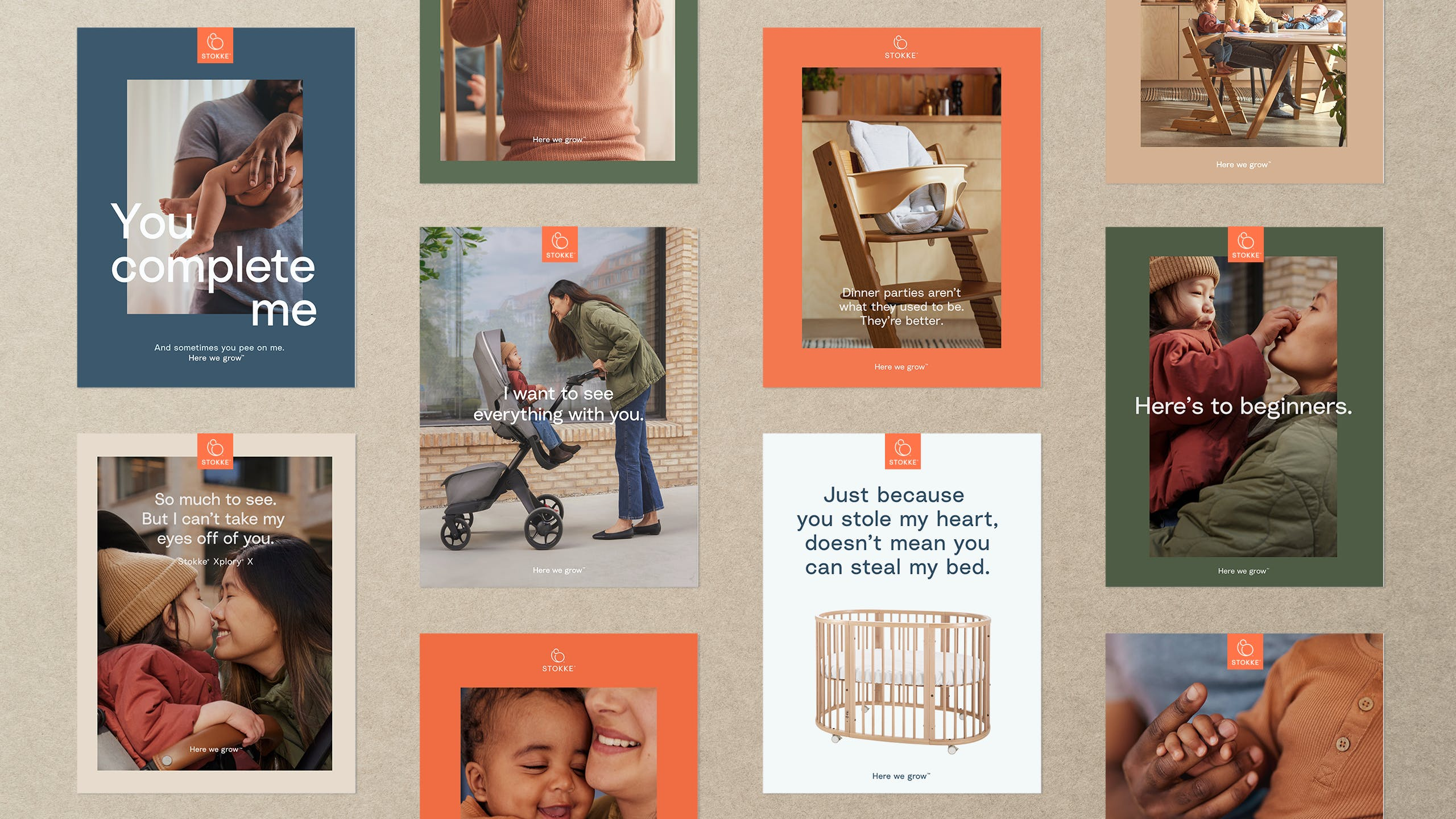 A brand built on its history and heritage, Stokke has embarked on a mission towards becoming the modern go-to brand for today’s families, with the new brand platform Here We Grow. As a part of this journey, we have introduced a new visual identity that brings this platform to life.